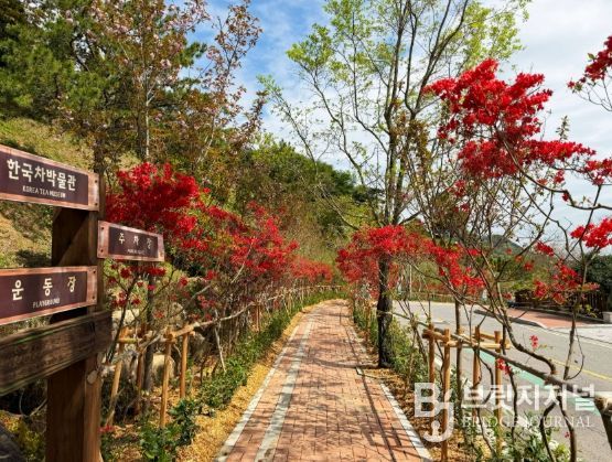 한국차문화공원 일원에는 ‘복합경관숲’이 조성된다. 품평관과 북루 사이 계곡 구간에는 목교 2개소를 설치하고, 팥꽃나무·공조팝나무·사계장미·황금실화백 등 다양한 수종을 식재해 경관을 강화했다.