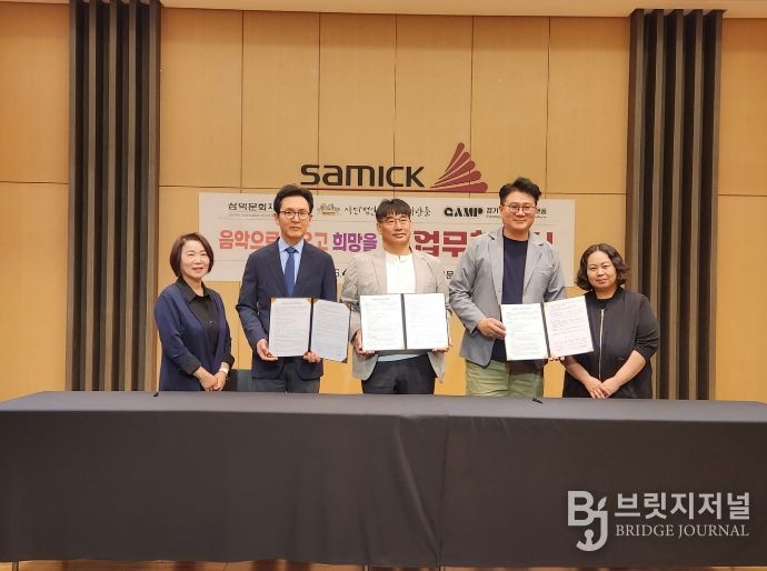 브릿지저널 김경미 기자 | 삼익문화재단, 사단법인 마을과사람들, 경기안성뮤직플랫폼은 지난 17일 서울 삼익악기 본사에서 ‘아동·청소년 문화예술교육 협력’을 위한 업무협약(MOU)을 체결했다고 밝혔다.