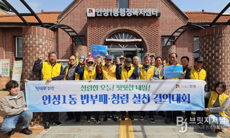 브릿지저널 김경미 기자 | 안성시 안성1동은 4월 23일 안성1동 노인회와 방위협의회가 함께한 ‘청렴해 봄’ 릴레이 청렴결의대회를 끝으로, 기관·사회단체가 함께한 청렴 실천 릴레이를 성공적으로 마무리하며 외부청렴도 향상에 힘을 모았다.