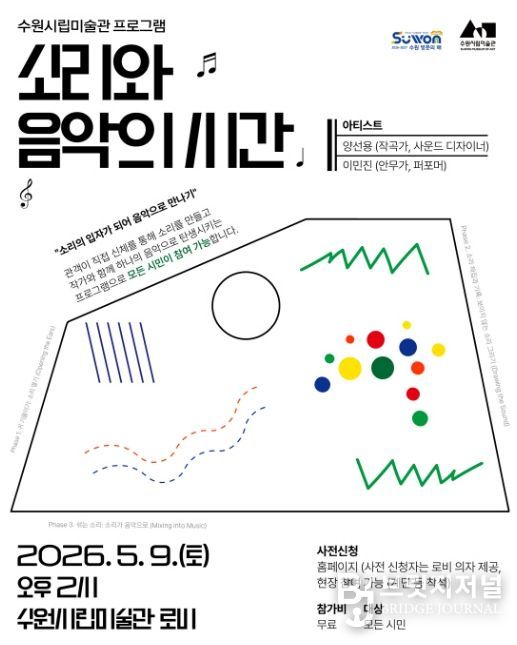 브릿지저널 김경미 기자 | 경기도 수원시립미술관은 을 맞아 소리를 주제로 한 음악 프로그램 '소리와 음악의 시간'을 5월 9일 개최하며 참여자를 모집한다.