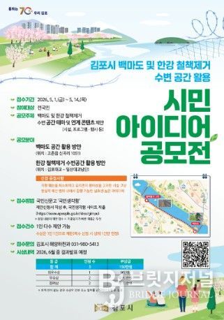 브릿지저널 김경미 기자 | 김포시가 한강 철책 제거 부지와 백마도 등 천혜의 수변 자원을 시민들의 쉼터와 문화 공간으로 탈바꿈하기 위해 ‘시민 아이디어 공모전’을 개최한다고 밝혔다. 이번 공모전은 ‘김포시 백마도 및 한강 철책 제거 수변 공간 활용’을 주제로, 시민들의 창의적이고 실효성 있는 아이디어를 발굴해 시정 운영에 적극 반영하기 위해 마련됐다.