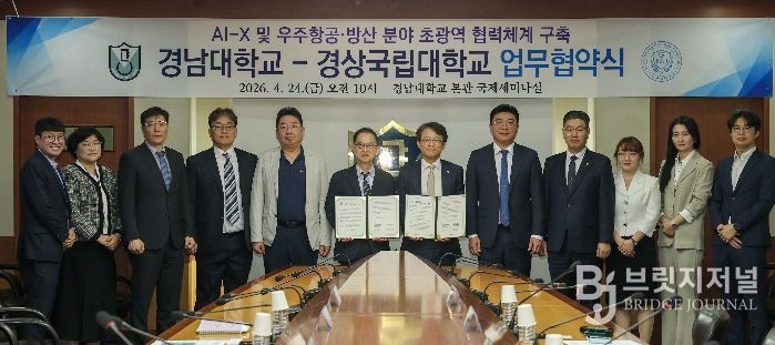 브릿지저널 김경미 기자 | 경상국립대학교와 경남대학교는 4월 24일 오전 10시 경남대학교 국제세미나실에서 국가균형성장과 동남권 지역 대학의 동반성장 촉진을 위한 업무협약을 체결했다.