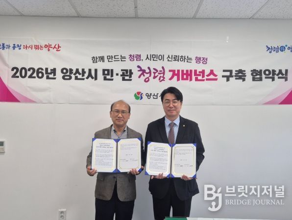 브릿지저널 김경미 기자 | 양산시는 건축행정의 신뢰를 높이고 투명한 건축 문화를 정착시키기 위해 양산시건축사회와 ‘민·관 청렴 거버넌스 구축을 위한 업무협약’을 체결했다고 밝혔다.