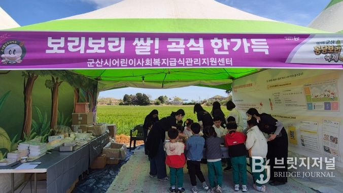 브릿지저널 윤나영 기자 | 군산시 어린이·사회복지급식관리지원센터는 지난 24일부터 26일까지 미성동 보리밭 일원에서 열린 꽁당보리축제에서 어린이와 시민들을 대상으로 ‘보리보리 쌀! 곡식 한가득!’ 체험 부스를 운영했다고 밝혔다.