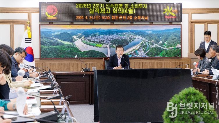 브릿지저널 김경미 기자 | 합천군은 24일 장재혁 합천군수 권한대행 주재로 ‘2026년 2분기 신속집행 대책보고회를 개최하고 지역 경제 활성화를 위한 재정 집행 가속화 방안을 논의했다.
