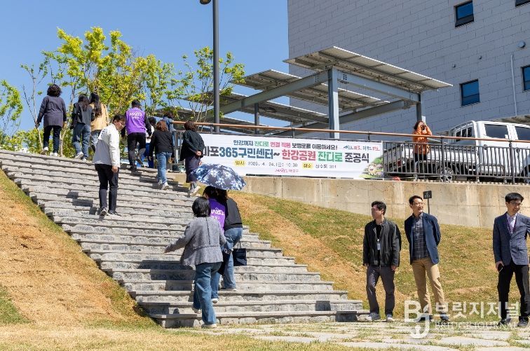 브릿지저널 김경미 기자 | 마포구는 마포365구민센터와 한강공원을 연결하는 녹색 보행로인 ‘잔디로’를 조성하고 4월 24일 오전 준공식을 개최했다.