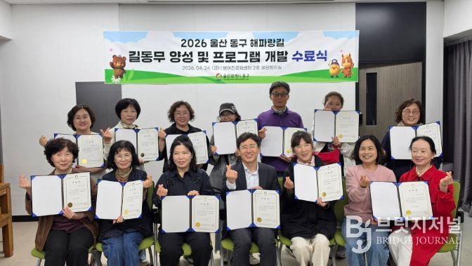 브릿지저널 윤나영 기자 | 울산 동구는 4월 24일 오후 1시 30분 방어진문화센터에서 ‘2026 울산 동구 해파랑길 길동무 수료식’을 개최했다.