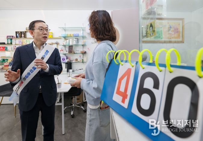 브릿지저널 김경미 기자 | 이명구 관세청장은 4월 24일 오후 안산 원곡동 다문화거리 현장을 직접 방문하여 환전영업자 검사 과정에 참여하고, 환전업체를 방문하여 주요 의무사항을 안내했다.