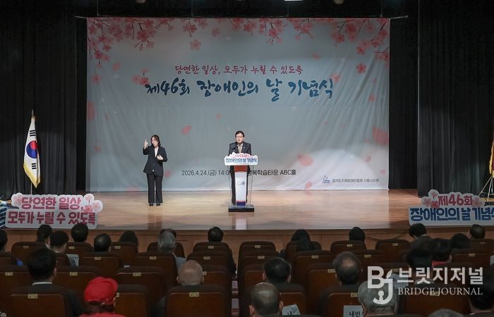 브릿지저널 김경미 기자 | 시흥시는 한국지체장애인협회 경기도협회 시흥시지회 주관으로 지난 4월 24일 시흥ABC행복학습타운 ABC홀에서 ‘당연한 일상, 모두가 누릴 수 있도록’이란 슬로건 아래 제46회 장애인의 날 기념식을 진행했다.