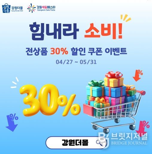 브릿지저널 윤나영 기자 | 강원특별자치도는 고유가와 물가 상승으로 위축된 소비심리를 회복하고 도내 기업의 판로 확대를 지원하기 위해 도 대표 온라인 쇼핑몰 ‘강원더몰에서 소비촉진 특별기획전을 추진한다.