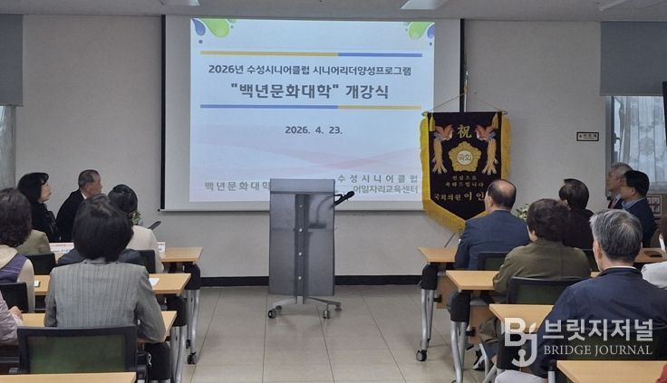 브릿지저널 김진석 기자 | 대구 수성시니어클럽이 운영하는 ‘백년문화대학’ 개강식이 지난 23일 백년문화대학 회원 등 80여 명이 참석한 가운데 수성시니어일자리교육센터에서 개최됐다.