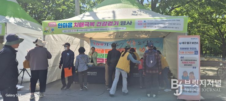 브릿지저널 김진석 기자 | 대구 중구보건소 치매안심센터는 지난 24일 두류공원 산책로 일대에서 치매 극복을 기원하고, 치매와 더불어 살아갈 수 있는 사회적 공감대 형성을 위해 ‘2026년 한마음 치매극복 건강걷기 행사’를 개최했다.