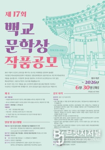 브릿지저널 윤나영 기자 | 재단법인 강릉문화재단과 사단법인 백교효문화선양회는 효(孝) 사상과 가족애를 주제로 한 문학작품 발굴을 위해 '제17회 백교문학상' 작품 공모를 실시한다.