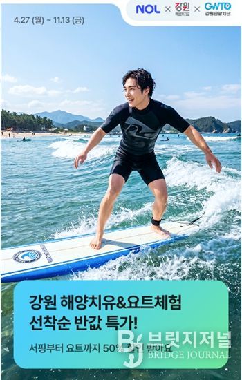 브릿지저널 윤나영 기자 | 강원특별자치도는 강원관광재단과 함께 동해안의 해양레저 관광을 재조명하고, 지역 관광산업에 새로운 활력을 불어넣기 위해 2026년 4월, ‘해양레저관광 할인 기획전’을 온라인 여행사를 통해 추진한다.