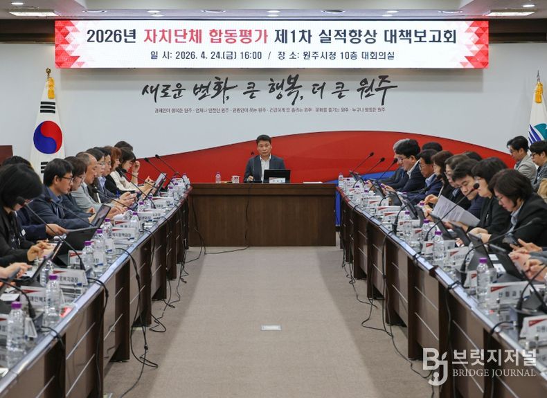 브릿지저널 윤나영 기자 | 원주시는 지난 24일 시청 대회의실에서 ‘2027년(2026년 실적) 자치단체 합동평가 실적향상 대책보고회’를 개최했다.