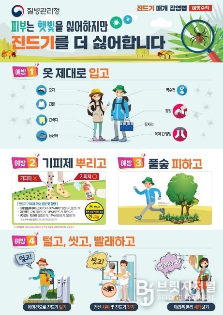 브릿지저널 김경미 기자 | 의정부시 보건소는 따뜻한 날씨로 농작업, 등산, 캠핑 등 야외활동이 본격화됨에 따라 진드기 매개 감염병 예방수칙 준수를 시민들에게 당부했다.