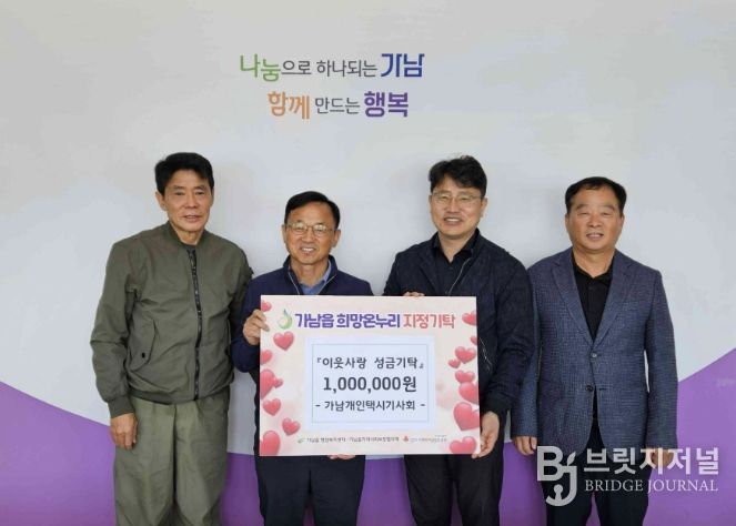 브릿지저널 김경미 기자 | 가남개인택시기사회는 지난 24일 가남읍 행정복지센터를 방문해 관내 취약계층을 위한 이웃돕기 성금 100만 원을 기탁했다.