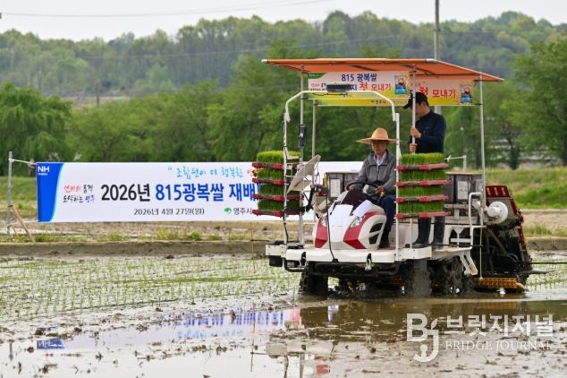 브릿지저널 정보영 기자 | 영주시와 안정농협은 4월 27일 안정면 오계리 최이한 농가의 논에서 ‘2026년 8·15광복쌀 재배단지 첫 모내기 행사’를 개최했다고 밝혔다.