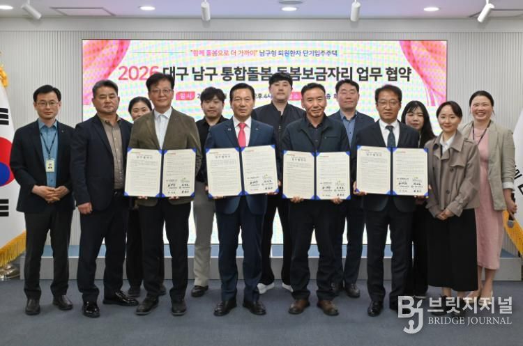 브릿지저널 김진석 기자 | 대구 남구는 지난 24일 지역사회 통합돌봄 활성화를 위한 『돌봄보금자리』 운영을 위해 LH대구북부권주거복지지사와 남구종합사회복지관 및 대명사회복지관과 업무협약을 체결했다고 밝혔다.