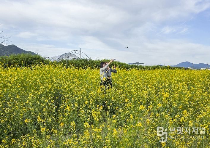 브릿지저널 윤나영 기자 | 남원시 주생면의 옛 활주로 부지가 노란 유채꽃 물결로 뒤덮여 상춘객들의 마음을 설레게 하고 있다.