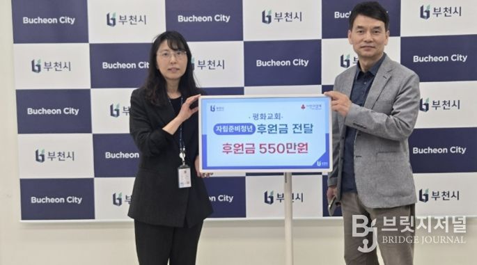 브릿지저널 김경미 기자 | 부천시는 지난 24일 중동 힐스테이트 프로그램실에서 ‘평화교회 자립준비청년 돕기 후원금 전달식’을 열었다. 이번 전달식은 평화교회가 지역 내 아동복지 향상과 나눔 문화 확산을 위해 마련됐다.