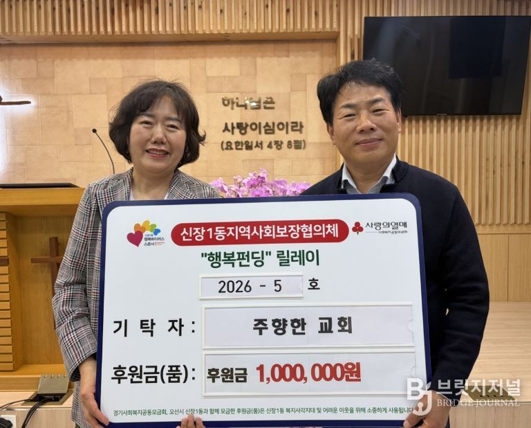 브릿지저널 김경미 기자 | 오산시 신장1동 행정복지센터는 지난 24일 신장1동 소재 주향한교회가 어버이날을 맞아 관내 취약계층 어르신들을 위한 후원금 100만원을 기탁했다고 밝혔다.