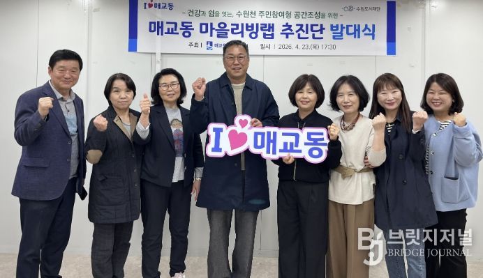 브릿지저널 김경미 기자 | 수원시 팔달구 매교동는 지난 23일, 주민자치회와 함께 매교동 행정복지센터에서 주민 주도의 마을 공동체 활성화와 수원천 내 휴식 공간 조성을 위한 ‘마을리빙랩 추진단’ 발대식을 개최했다.