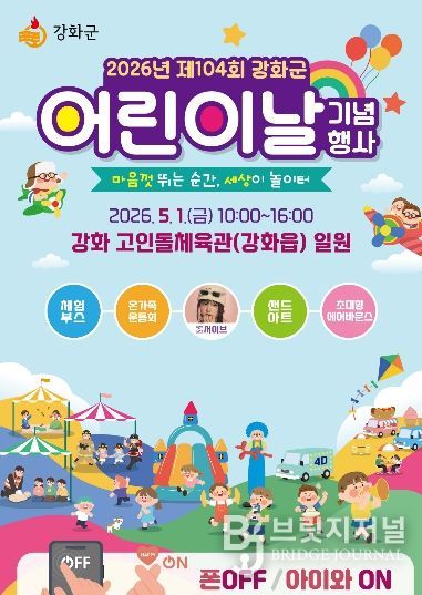 브릿지저널 김경미 기자 | 강화군은 제104회 어린이날을 맞아 오는 5월 1일 오전 10시부터 강화읍 고인돌체육관에서 어린이날 기념행사를 개최한다.