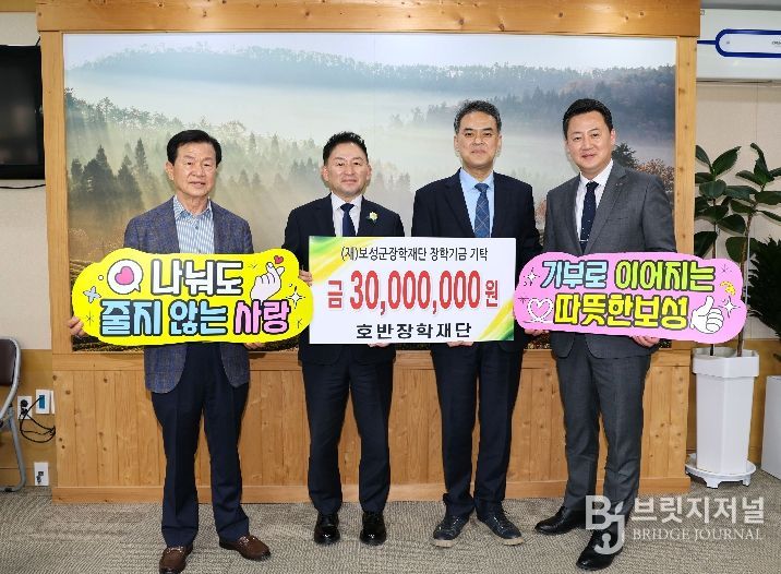 브릿지저널 김경미 기자 | 보성군은 24일 호반장학재단(이사장 김상열)이 지역 인재 양성을 위해 장학기금 3,000만 원을 (재)보성군장학재단(이사장 문찬오)에 기탁했다고 밝혔다.