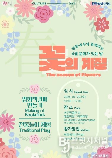 브릿지저널 윤나영 기자 | 전주시 어진박물관은 오는 29일 4월 ‘문화가 있는 날’을 맞아 ‘꽃의 계절’을 주제로 한 체험프로그램을 운영한다고 27일 밝혔다.