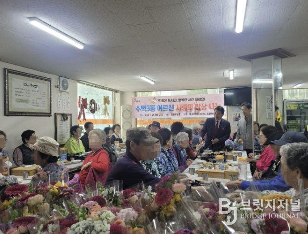 브릿지저널 김경미 기자 | 구리시 수택3동 행정복지센터는 지난 4월 25일 관내 음식점 엄나무보쌈과 함께 독거어르신들을 위한 사랑의 밥상 나눔 행사를 했다고 밝혔다.