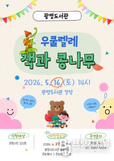 브릿지저널 김경미 기자 | 광명시 광명도서관이 오는 5월 16일 오후 2시 온 가족이 함께 즐길 수 있는 창작뮤지컬 '우쿨렐레, 잭과 콩나무'를 연다.