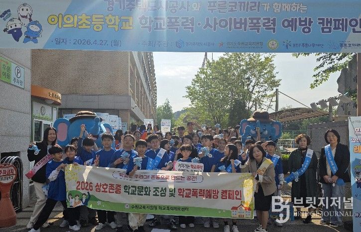 브릿지저널 김경미 기자 | 경기도수원교육지원청은 4월 27일 오전, 이의초등학교에서 유관기관과 합동으로 ‘학교로 찾아가는 사이버폭력 예방 등굣길 캠페인’을 실시했다고 밝혔다.