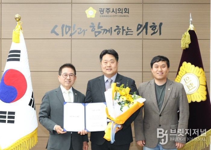 브릿지저널 김경미 기자 | 광주시의회는 지난 23일, 광주시의회 4월 칭찬공무원으로 문화관광과 관광팀의 황태선 팀장을 선정하여 의장실에서 증서를 수여했다.