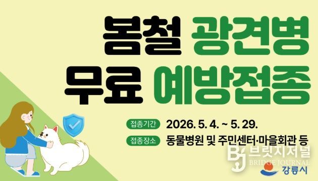 브릿지저널 윤나영 기자 | 강릉시는 인수공통전염병으로 알려진 광견병을 예방하고 시민과 반려동물을 안전하게 보호하기 위해 5월 4일부터 29일까지 광견병 예방접종을 실시한다.