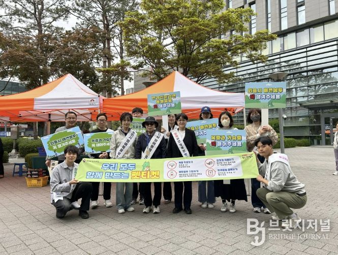 브릿지저널 김경미 기자 | 용인특례시 수지구는 27일 성숙한 반려동물 문화 조성을 위해 수지구청역 인근과 수지구청 광장에서 ‘반려동물 펫티켓’ 캠페인을 실시했다고 28일 밝혔다.
