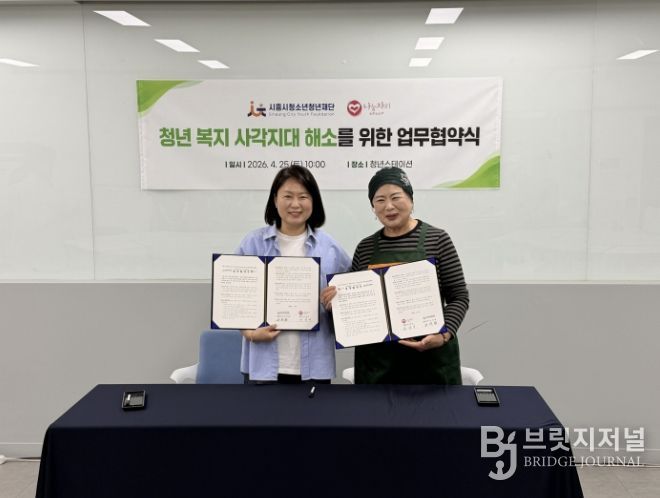 브릿지저널 김경미 기자 | (재)시흥시청소년청년재단은 지난 4월 25일 나눔자리문화공동체와 지역의 청년 복지 사각지대를 해소하고 고립·은둔 청년 지원을 강화하기 위한 업무협약(MOU)을 체결했다고 밝혔다.