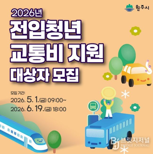 브릿지저널 윤나영 기자 | 원주시는 청년층의 전입과 안정적인 정착을 지원하기 위해 2023년 이후 원주시로 전입하고, 관외 직장으로 출퇴근하는 18∼39세 청년들을 대상으로 최대 120만 원의 교통비를 지원한다.