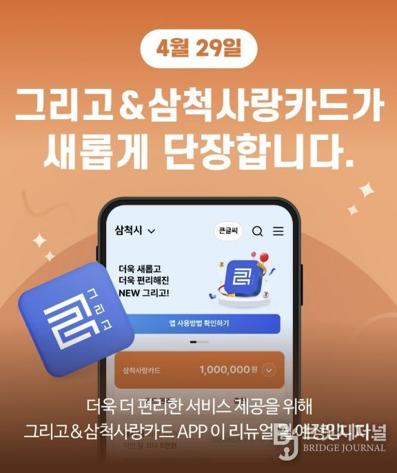 브릿지저널 윤나영 기자 | 삼척시는 4월 29일부터 시민 소통 기능 및 사용자 편의성을 한층 강화해 ‘삼척사랑카드’앱을 새롭게 선보인다.