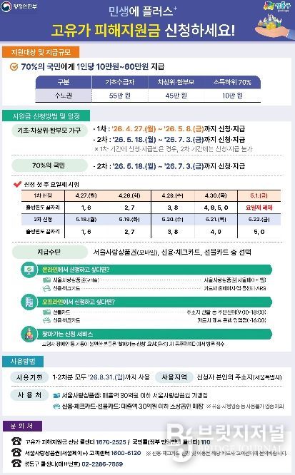 브릿지저널 김경미 기자 | 서울 성동구가 고유가와 물가 상승으로 늘어난 구민 생활 부담을 완화하고 지역 내 소비를 촉진하기 위한 ‘고유가 피해지원금’ 지급을 4월 27일부터 시작한다고 밝혔다.