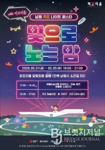 브릿지저널 윤나영 기자 | 남원시 미디어아트 전시관 피오리움 일원에서 어린이날 주간을 맞이하여 5월 1일부터 5월 5일까지 ‘키즈 나이트 페스타 '빛으로 노는 밤'’이 열린다.
