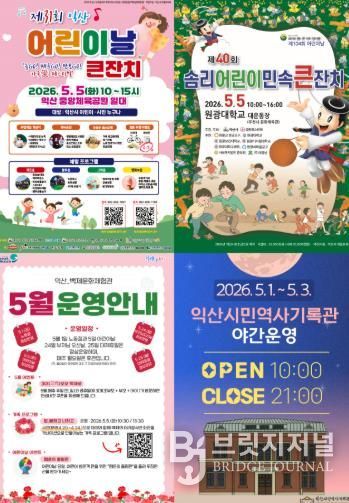브릿지저널 윤나영 기자 | 익산시가 5월 가정의 달과 어린이날 황금연휴를 맞아 도심형 축제와 이색 레저, 생태 힐링이 어우러진 풍성한 즐길 거리를 선보인다고 28일 밝혔다.
