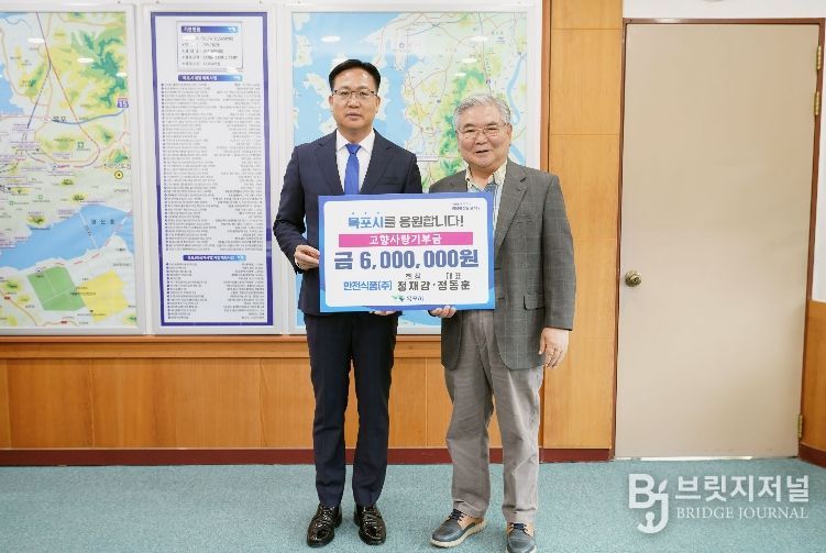 브릿지저널 김경미 기자 | 목포시는 지난 27일 만전식품 정재강 회장이 시를 방문해 고향사랑기부금 600만 원을 기탁했다고 밝혔다.