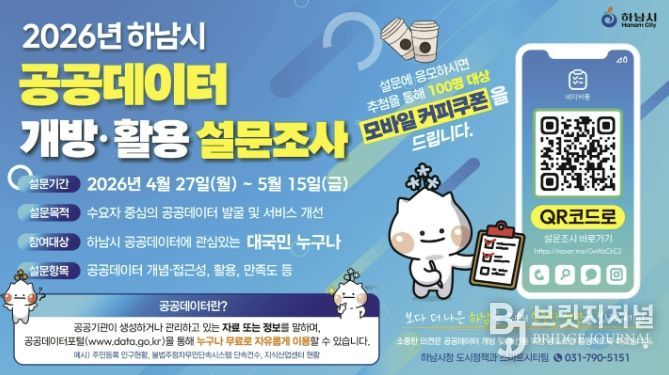 브릿지저널 김경미 기자 | 하남시는 시민과 기업, 연구기관 등 다양한 수요자의 의견을 반영해 공공데이터 개방 및 활용을 확대하고자 ‘2026년 하남시 공공데이터 설문조사’를 실시한다고 밝혔다.