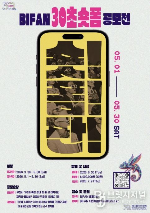브릿지저널 김경미 기자 | 부천시는 부천국제판타스틱영화제(BIFAN)와 함께 ‘숏! 폼! 판! BIFAN 30초 숏폼 공모전’을 열고, 제30회를 맞은 영화제를 기념해 시민 참여형 프로그램을 운영한다.
