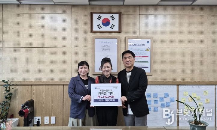 브릿지저널 김경미 기자 | 포천시 영중면 영중장학회는 지난 27일 지역 인재 양성을 위해 포담초등학교와 영중중학교를 방문해 장학금을 전달했다.