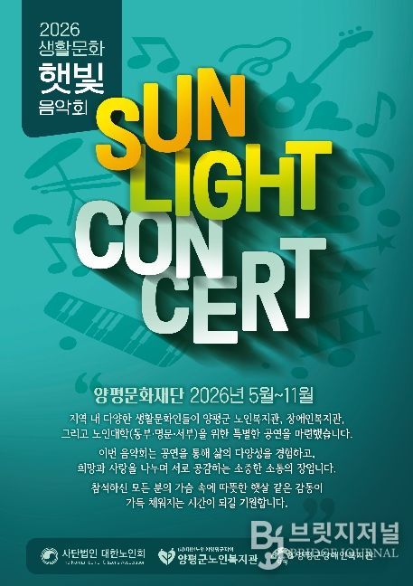 브릿지저널 김경미 기자 | (재)양평문화재단은 관내 문화 예술 향유 기회를 확대하기 위해 찾아가는 음악회 ‘2026 햇빛 음악회’를 오는 5월 8일부터 본격적으로 운영한다고 밝혔다.