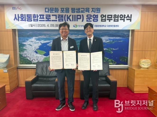 브릿지저널 김경미 기자 | 창원특례시는 시청 접견실에서 국립창원대학교와 외국인 주민의 안정적인 지역사회 정착 지원을 위한 '사회통합프로그램 운영' 업무협약을 체결했다고 밝혔다.