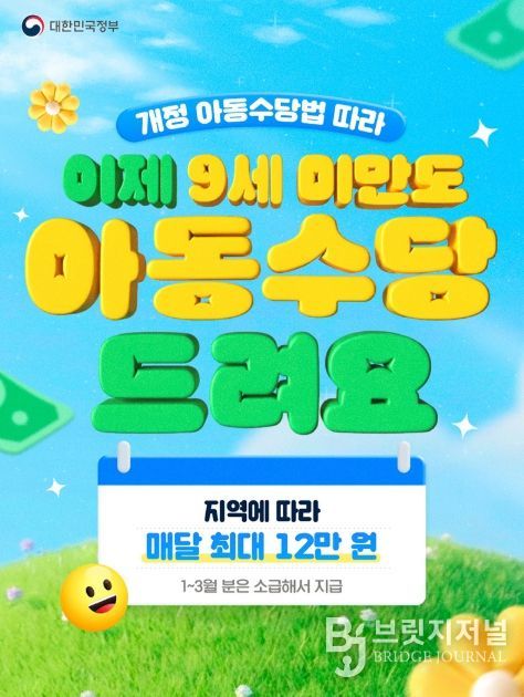 브릿지저널 김경미 기자 | 개정 아동수당법 따라 이제 9세 미만도 아동수당 드려요.