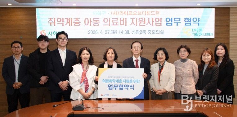브릿지저널 윤나영 기자 | 부산 사하구는 지난 27일 사단법인 라이프오브더칠드런과 ‘취약계층 아동 의료비 지원사업’ 업무협약을 체결했다.